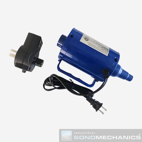 This electric air blower is used to cool the ACT-22-LSP piezoelectric transducer supplied with ISM’s LSP-600 ultrasonic liquid processor configured in the flow-through mode. With this device, the heat generated in the transducer during continuous operation is efficiently removed, allowing the processor to work continuously for extended periods of time (up to about 1 – 2 hours).
