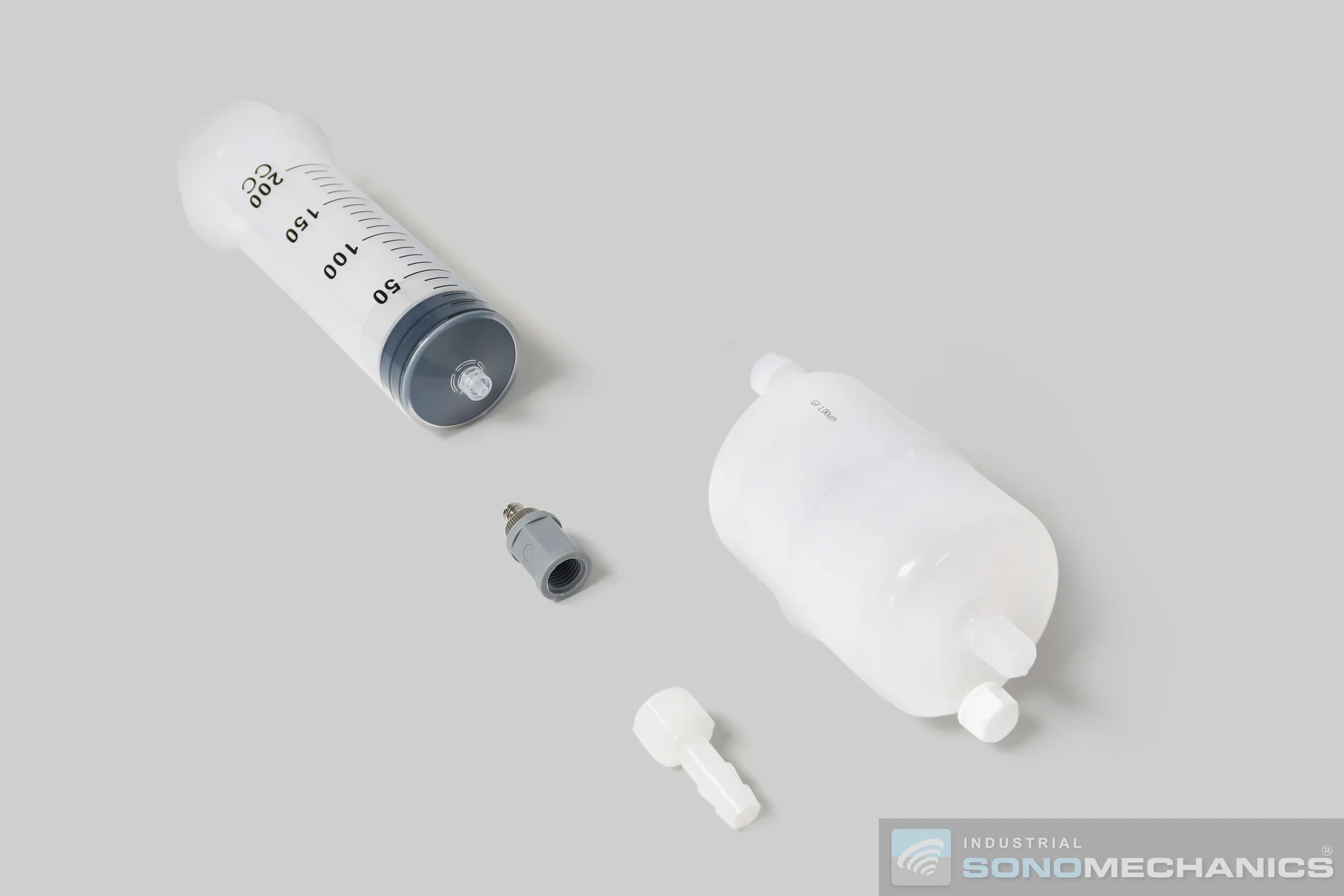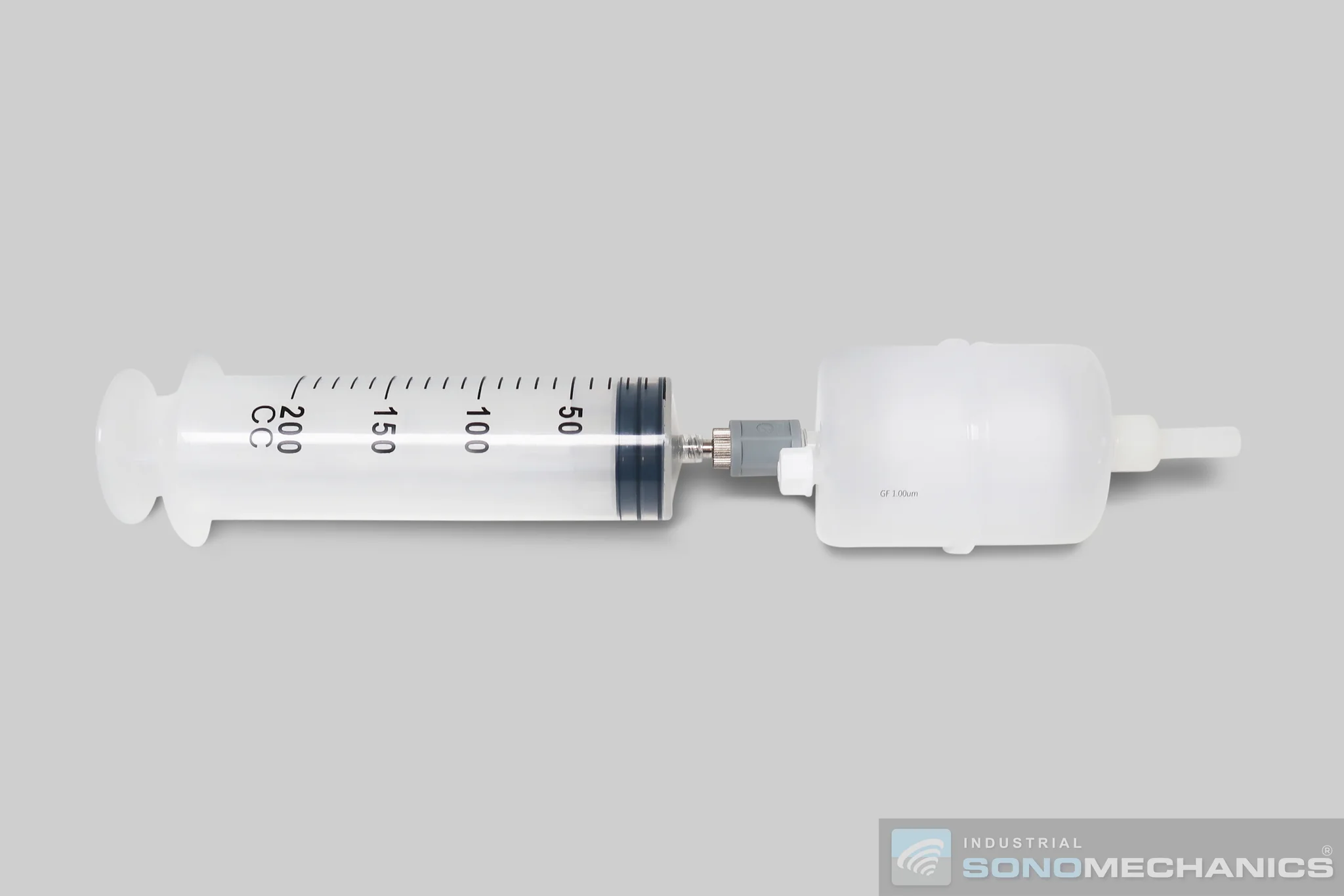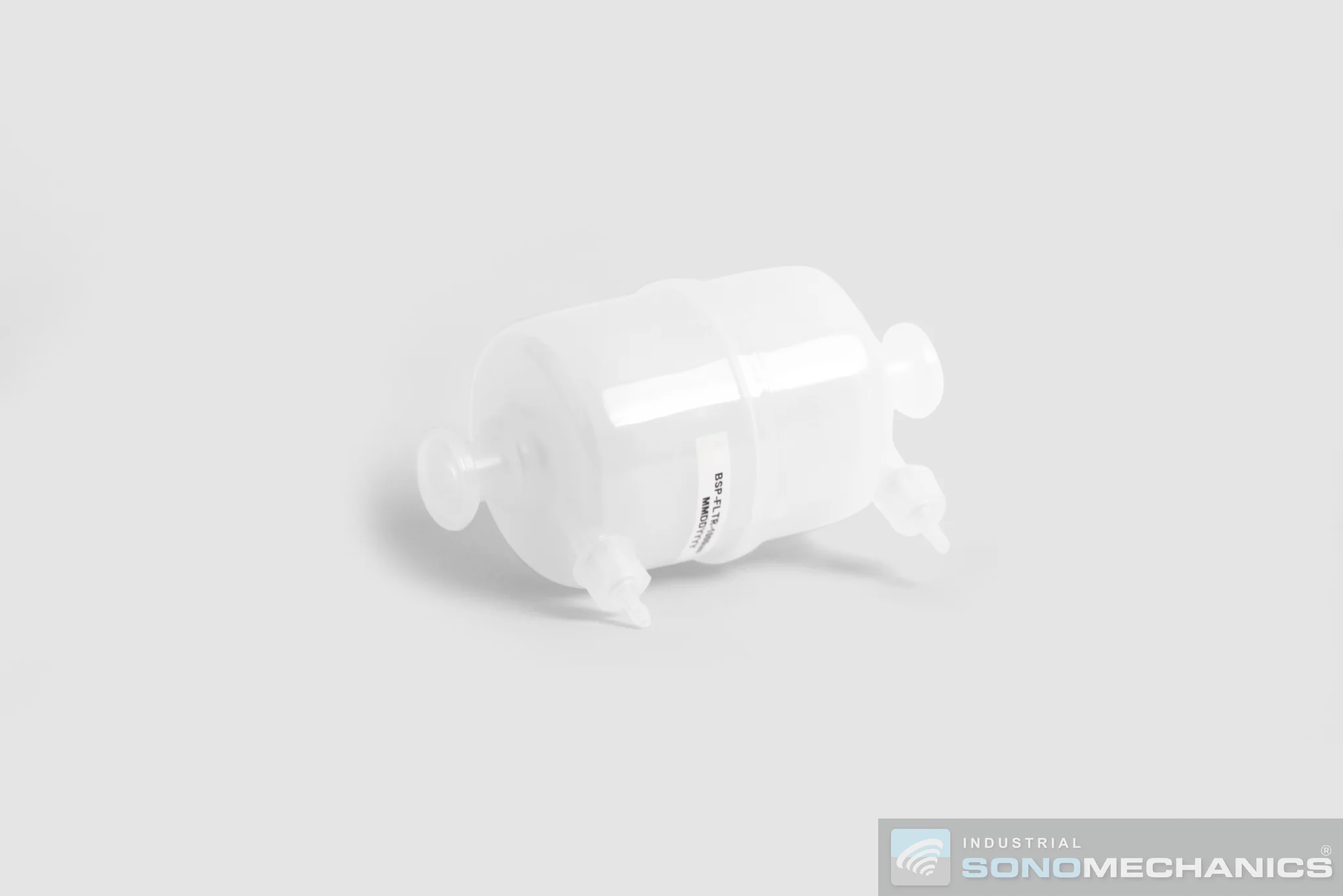Filtration though a hydrophilic membrane with 0.22 micron and 1 micron pores is an important post-processing step of ultrasonic nano-emulsification with NanoStabilizer®-LT and NanoStabilizer®-LSO, which removes such particulate contamination as dust, large microorganisms, plant matter and titanium particles. In-line capsule filters are reusable and can typically handle several liters of product before having to be back-flushed with purified water to clear out the particulates retained by the membrane.