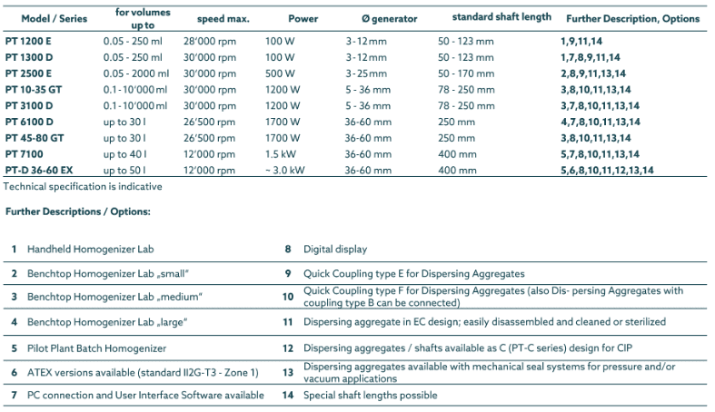 PT 10-35 GT features high drive power and sleek design. With its large reserve capacity, it can be used for a sample with large volumes as easily as preparing samples with small volumes.