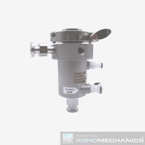With the use of this reactor chamber (flow cell), the BSP-1200 ultrasonic system can be configured in the flow-through mode, which typically outperforms the batch mode in terms of processing capacity, ultrasonic exposure uniformity and temperature stability.